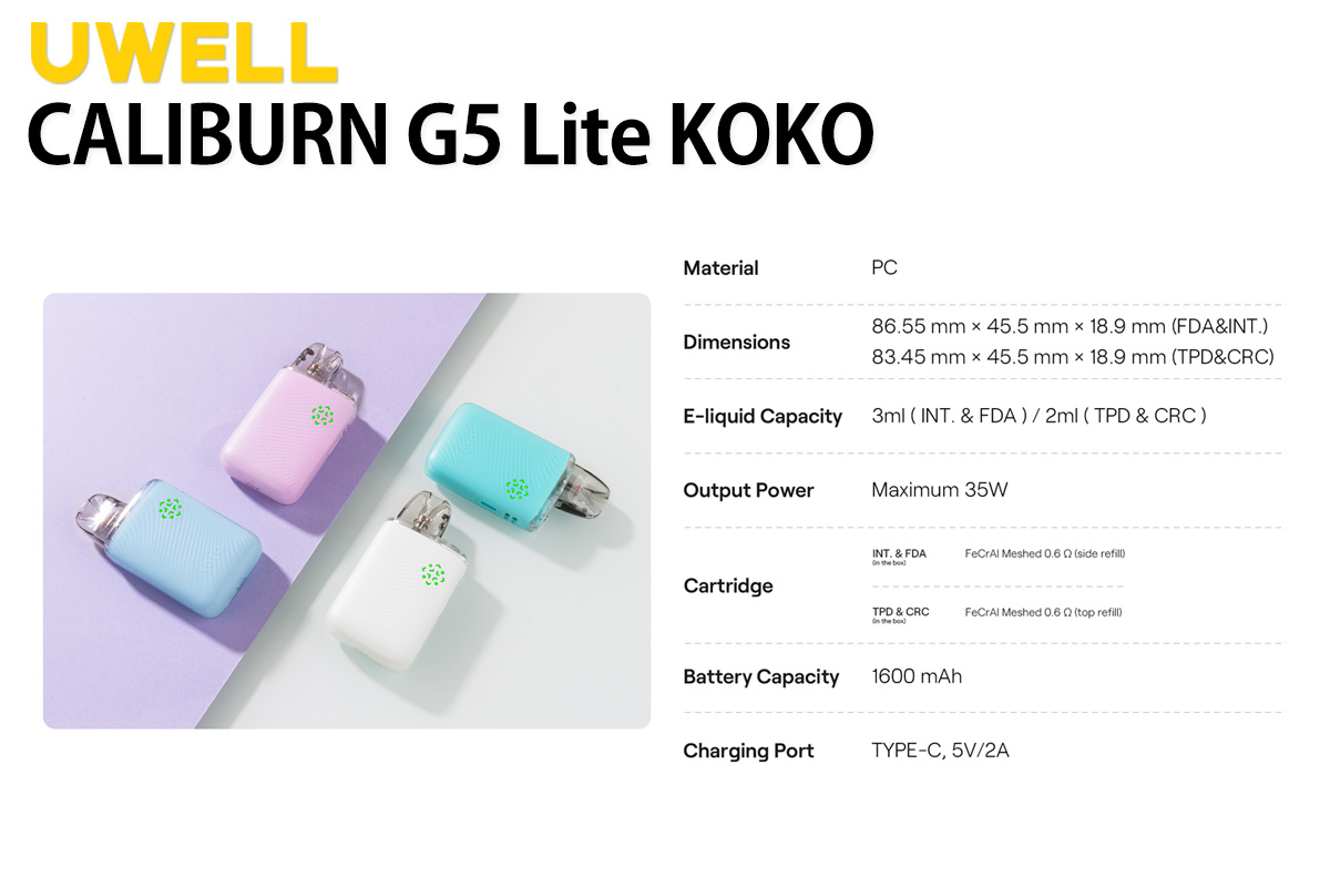 UWELL Caliburn (キャリバーン) KOKO シリーズに、Caliburn G5 Lite KOKO が登場しました。